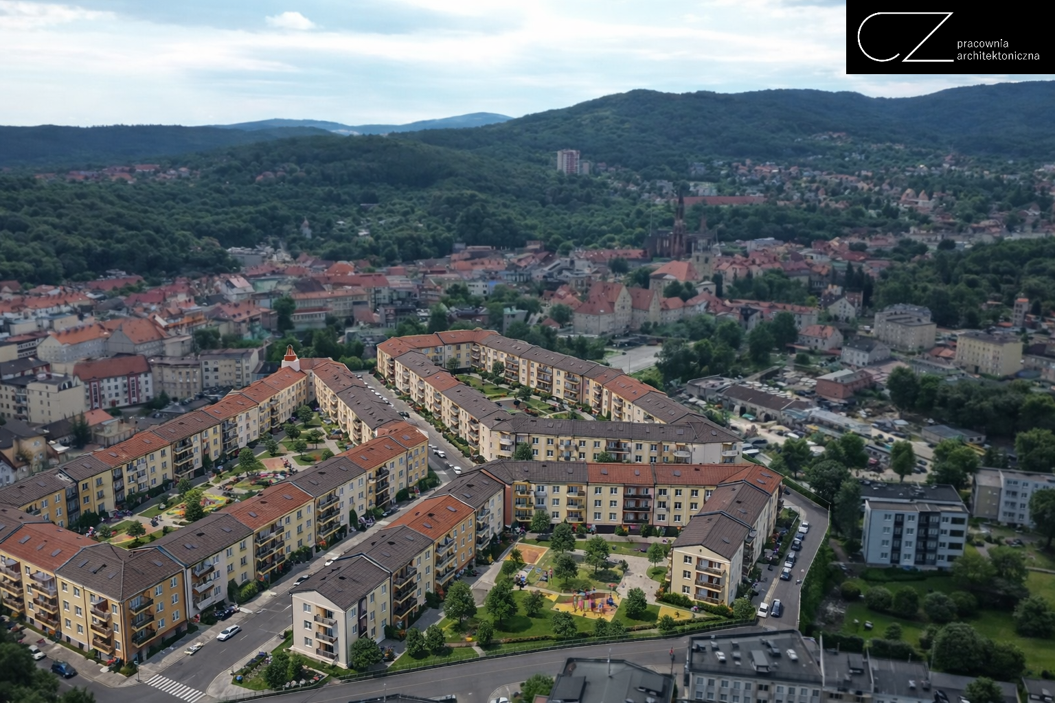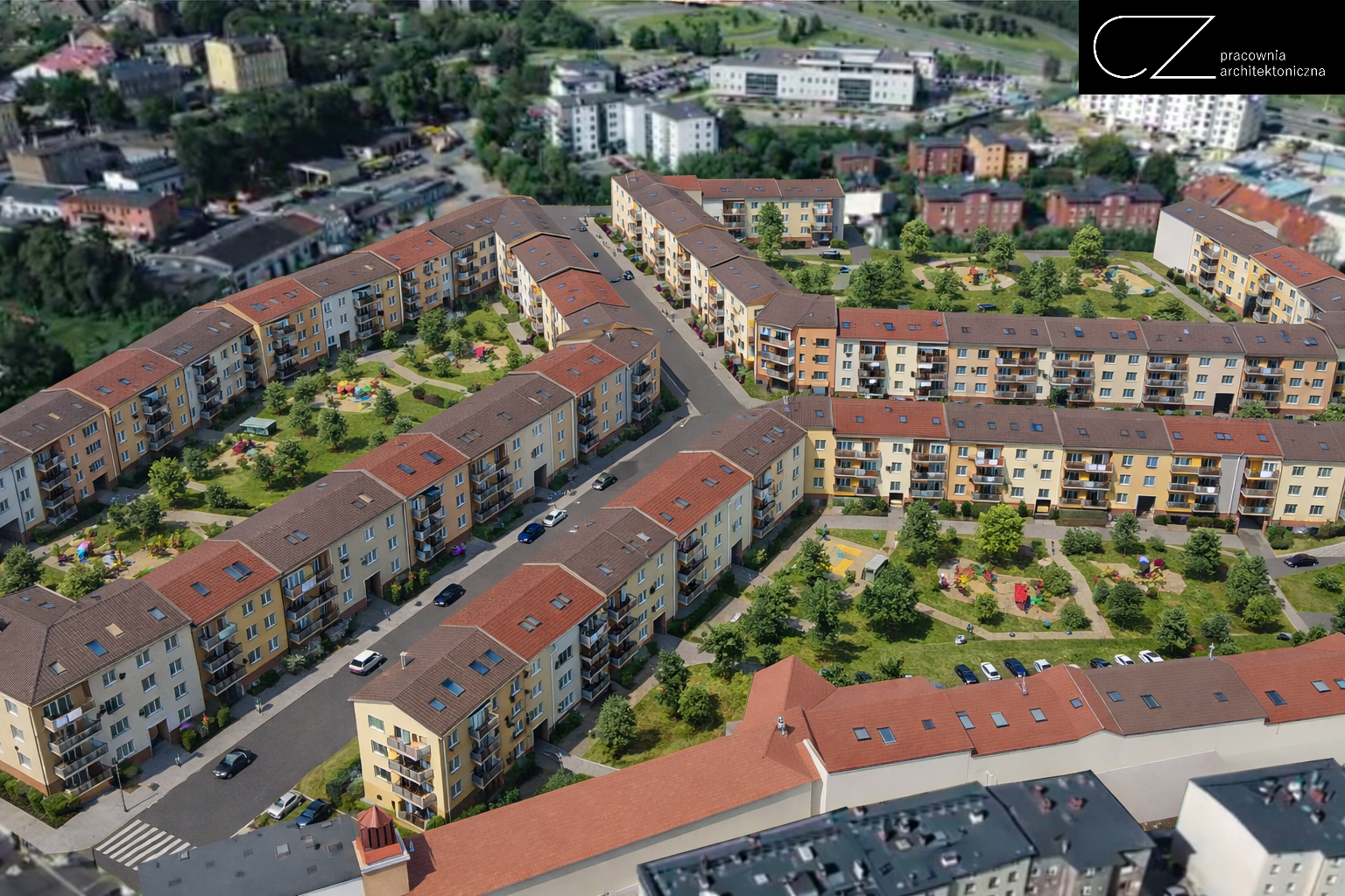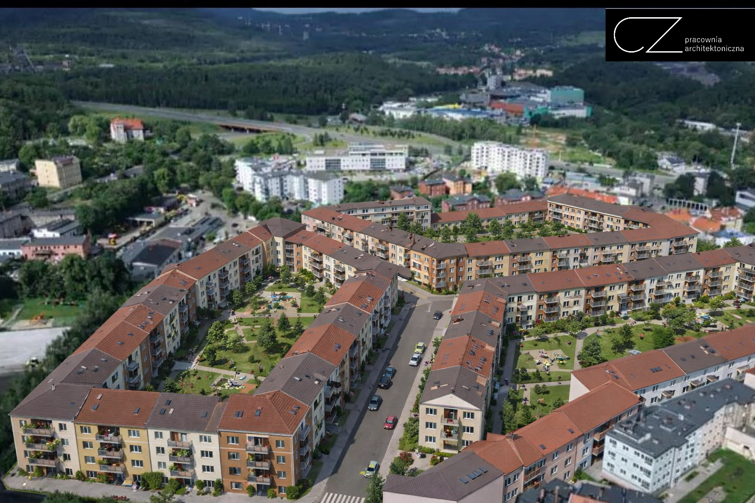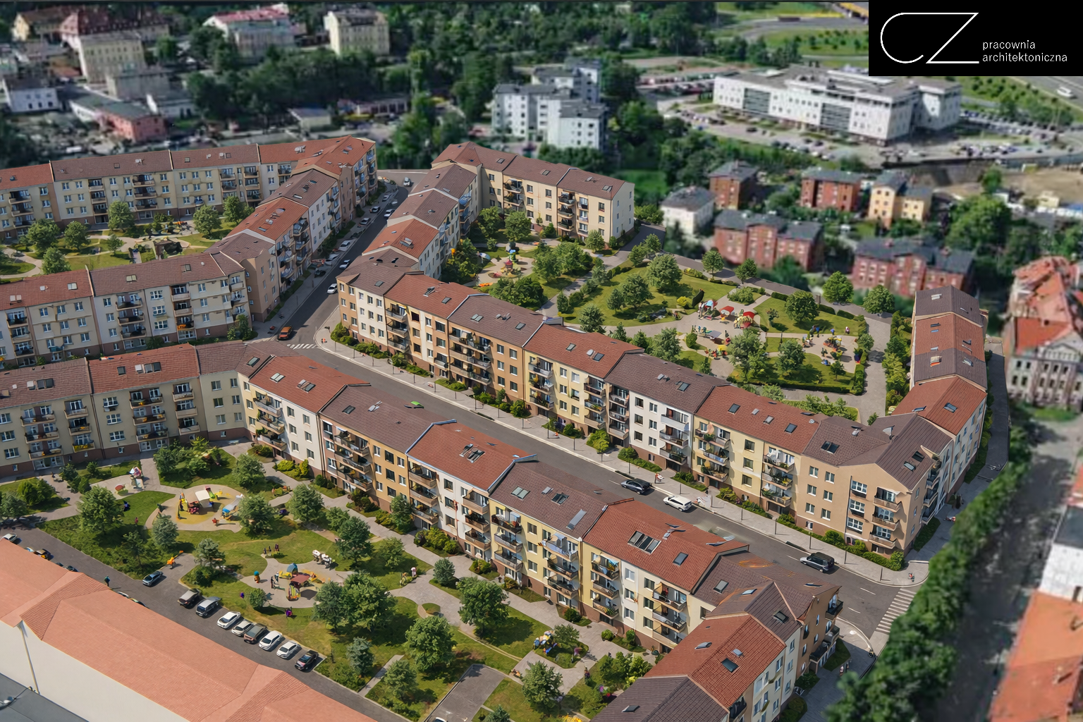 W 2024 roku opracowaliśmy w Wałbrzychu koncepcję urbanistyczną dla terenu po byłej fabryce porcelany Krzysztof, pokazując inwestorowi realny i czytelny potencjał zagospodarowania zgodnego z miejscowym planem. Na podstawie szczegółowych analiz powstała spójna wizja trzech kwartałów zabudowy z zielonymi dziedzińcami, ogrodami, placami zabaw oraz układem ulic i komunikacji publicznej dopasowanym do założeń planistycznych. To opracowanie pozwoliło spojrzeć na teren w dużej skali i stało się wartościowym narzędziem do dalszych rozmów z przyszłymi nabywcami.